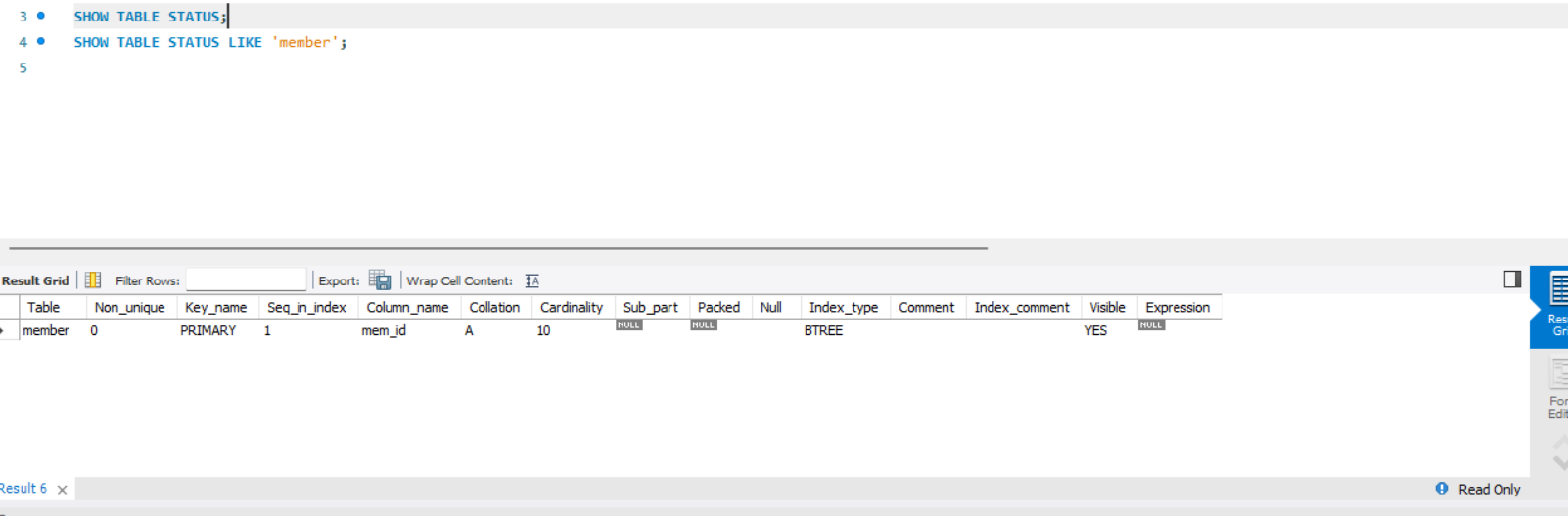 SHOW INDEX FROM member;