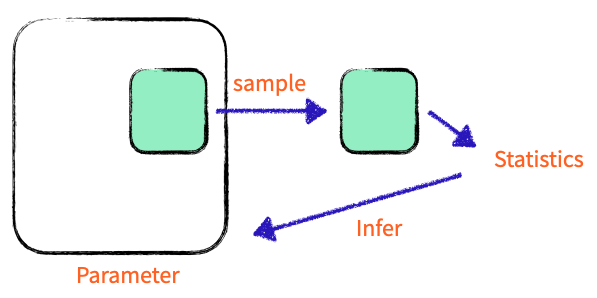 - Population (모집단): 연구자가 알고싶어하는 대상, 집단 전체 (즉, 연구자가 알고싶은것 그 자체)