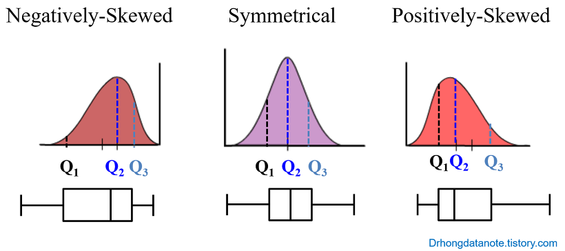 - quartile deviation (사분편차) : (Q3-Q1) / 2