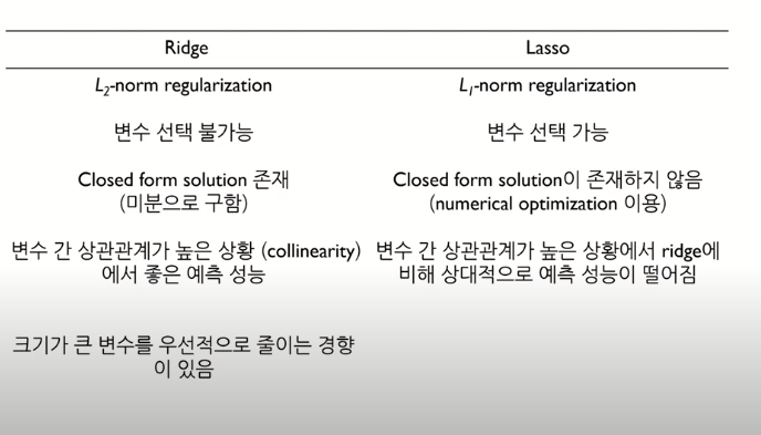 정규화(Regularized) 선형회귀 방법은 선형회귀 계수(weight)에 대한 제약 조건을 추가함으로써 모형의 과적합을 막는 방법이다.